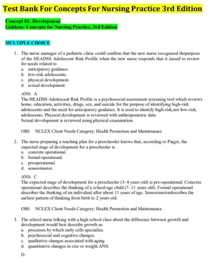 Test Bank For Concepts For Nursing Practice 3rd Edition