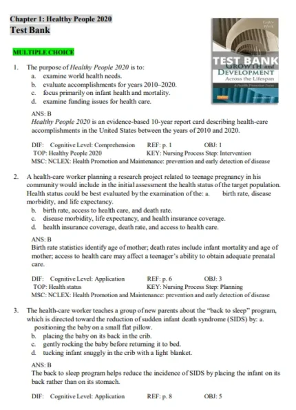 Test Bank For Growth and Development Across the Lifespan 2nd Edition