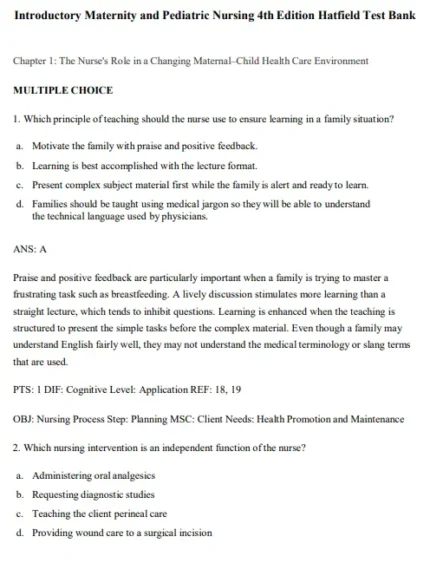 Test Bank For Introductory Maternity and Pediatric Nursing 4th Edition