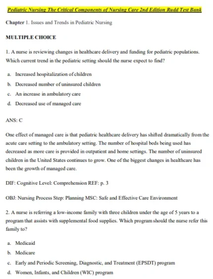 Test Bank For Pediatric Nursing The Critical Components of Nursing Care 2nd Edition by Rudd