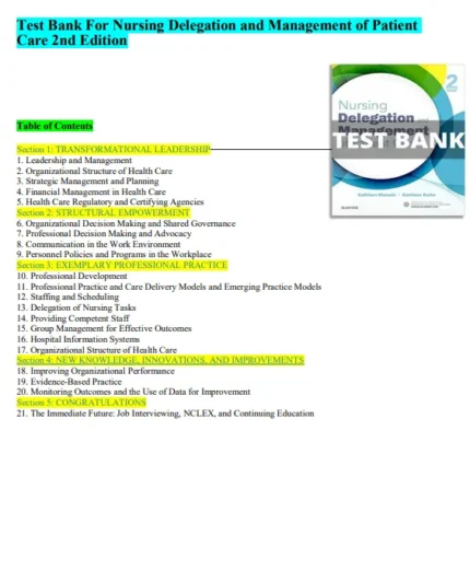 Test Bank-Nursing Delegation and Management of Patient Care 2nd Edition-All Chapters
