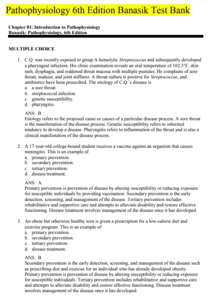 Test Bank For Pathophysiology 6th Edition by Banasik