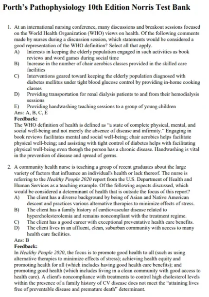 Test Bank For Porth’s Essentials of Pathophysiology 5th Edition by Norris