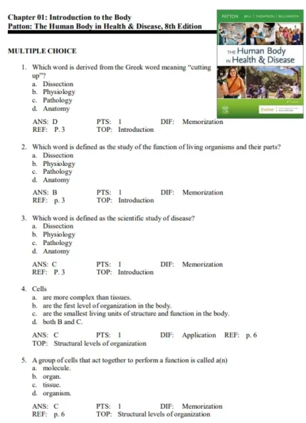 Test Bank For The Human Body in Health and Disease 8th Edition by Patton
